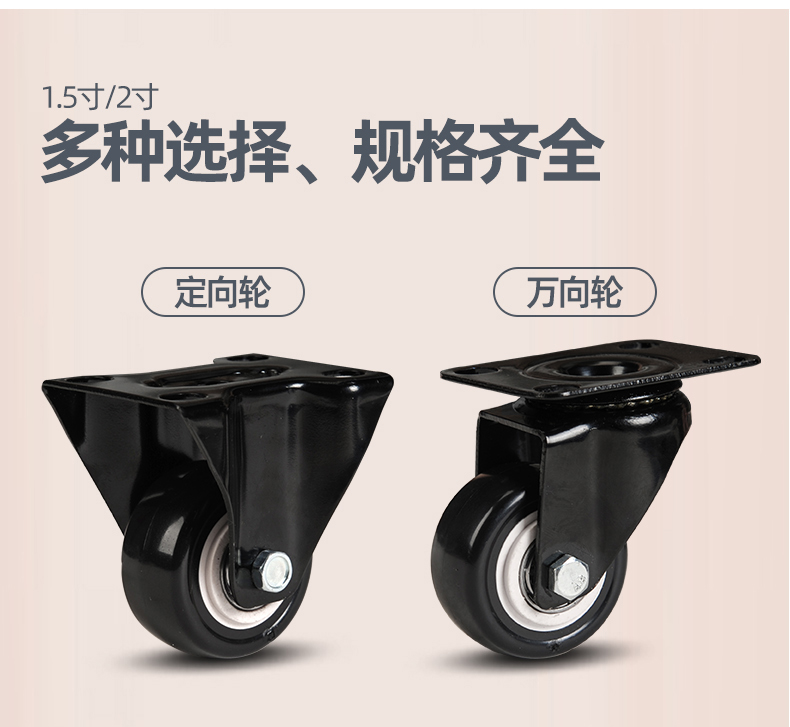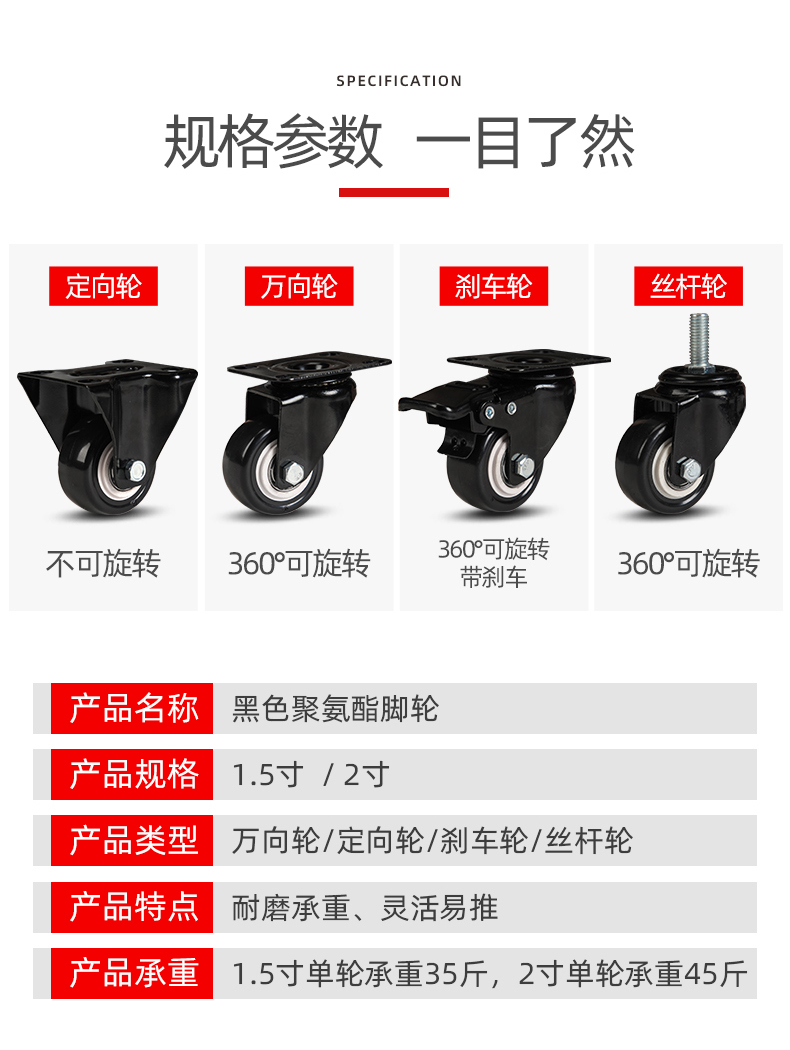脚轮产品有轻型脚轮、中型脚轮、工业脚轮、减震脚轮、双刹脚轮、脚手架脚轮、重型超重型脚轮。
