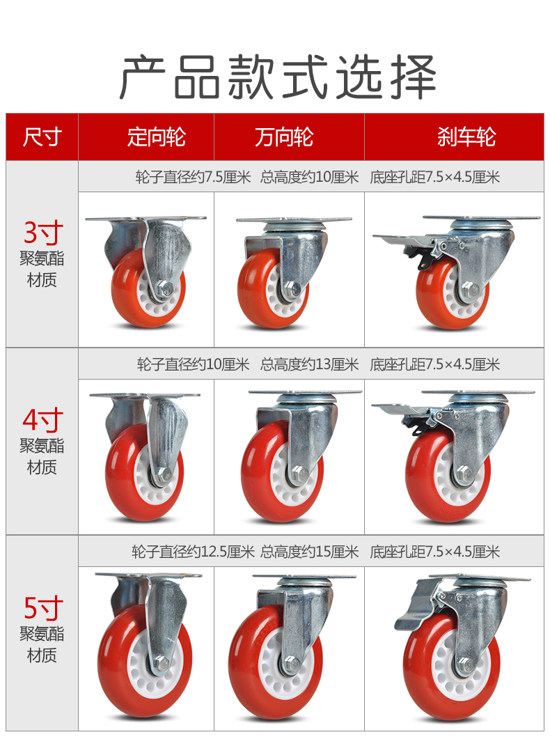 脚轮产品有轻型脚轮、中型脚轮、工业脚轮、减震脚轮、双刹脚轮、脚手架脚轮、重型超重型脚轮。