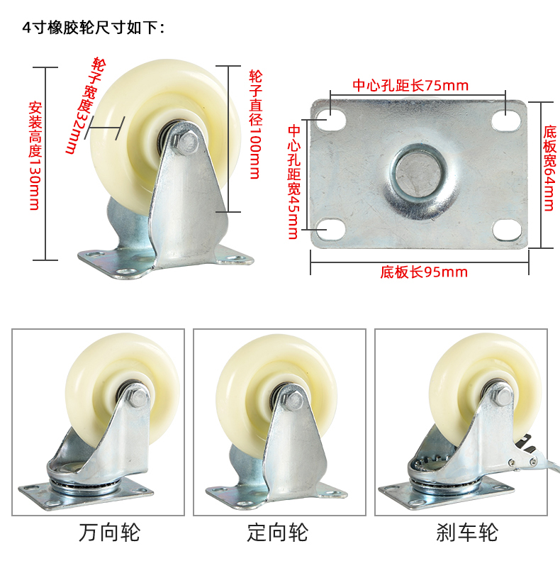 * 表示必填采购:中型尼龙脚轮